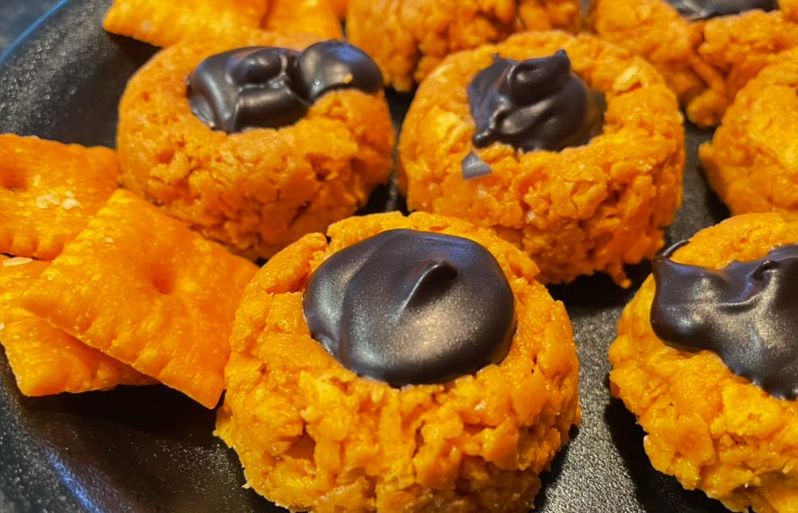 All RecipesDessertsSnacks Butterfinger® Bites Butterfinger® Bites by admin October 24, 2025 344 Butterfinger® Bites Print Recipe Nutrition facts: 200 calories 20 grams fat Rating: 5.0/5 ( 2 voted ) Ingredients EQUIPMENT - Stand mixer (can be done by hand but a mixer works better) - Mini donut or mini muffin tin - Baking sheet INGREDIENTS 3 cups Cheez-It® or other cheese-flavored crackers 1/4 cup powdered sugar 1/2 cup peanut butter + 2 tbsps 1/2 cup meltable chocolate such as chocolate bark* Instructions 1. Pour Cheez-It crackers into mixer bowl and crush by hand into a coarse crumb. 2. Add powdered sugar and mix on low until combined. 3. Add peanut butter and mix until combined and ball is formed. 4. Scoop peanut butter cracker mixture into mini donut tins (or mini muffing tins) and press to pack down. 5. Refrigerate for 20 minutes. 6. Remove from fridge. Pop out bites and place flat/large side down on baking sheet. 7. Melt chocolate according to package; once melted add 2 tbsps peanut butter and stir until combined. 8. Spoon about 1/2 tbsp of chocolate mixture into the "hole" of each bite. (If using muffin tins, spoon over top and "smoosh" the chocolate on top to spread it and let it run down the sides, more like a volcano.) 9. Return to fridge to set chocolate and until time to serve. 10. ENJOY! Notes *Chocolate bark or candy coating chocolate is recommended as it melts better than chocolate chips 0 FacebookTwitterPinterestEmail previous Peanut Butter Pudding Cake next New CHOP Research Signals Hope for Reducing Childhood Food Allergies More Like This Peanut Butter Bacon Breakfast Burrito Chicken Linguine w Gochujang Peanut Sauce Peanut Butter Pudding Cake PB&J “Sushi” Rolls Trout Nutter-dine Peanutty Jolly Jelly Bites Kung Pao Sloppy Joes Peanut Butter Apple Breakfast Tarts Georgia Snowball Cookies Halloween Treats