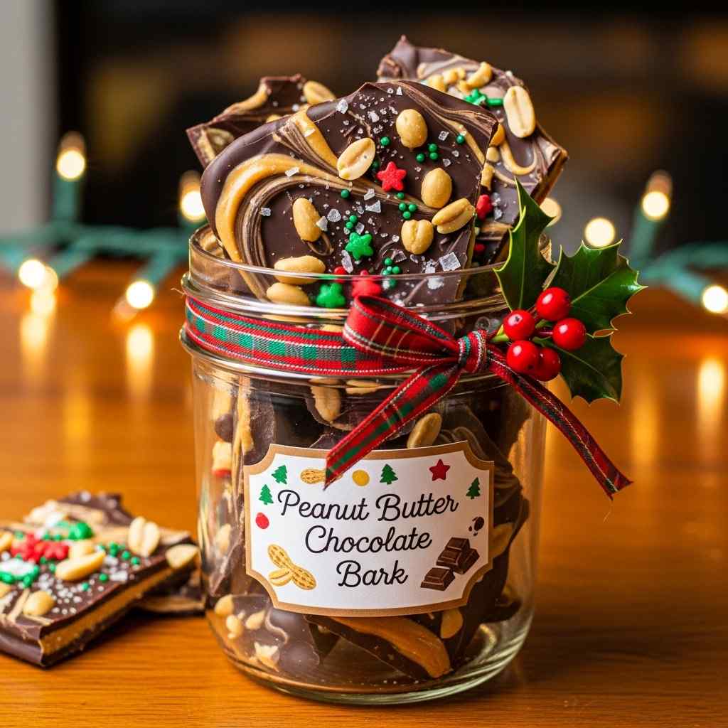 Gift Giving Peanut Butter Chocolate Bark Peanut Butter Chocolate Bark by admin November 18, 2025 166 “I’ve always loved recipes that look fancy but are secretly so easy and this Peanut Butter Chocolate Bark is one of those little surprises. With just a few ingredients and a quick swirl of a spoon, you end up with something that looks like it came straight from a gourmet shop. It’s rich, creamy, and absolutely irresistible. To make it, I start by pouring the melted chocolate onto a sheet of parchment paper, spreading it out into a thin, even layer. Then comes the fun part, dropping spoonfuls of peanut butter on top and swirling it gently with a knife or skewer to create those pretty marbled patterns. I like to add a sprinkle of something extra, a few crushed peanuts for crunch, a pinch of flaky sea salt, or a handful of mini chocolate chips. Then I pop it in the fridge to chill until firm. Once it’s set, I break it into rustic pieces and package it in jars or clear treat bags. Add a little ribbon and a tag and you’ve got the perfect (easy) homemade gift. This bark is one of those treats that’s as fun for me and my kids to make as it is to give. It’s simple, delicious, and always a hit with anyone who loves that classic peanut butter and chocolate combo.” – Michelle, Utah Peanut Butter Chocolate Bark Print Recipe Nutrition facts: 200 calories 20 grams fat Rating: 5.0/5 ( 1 voted ) Ingredients 1 cup dark or milk chocolate, melted 1/2 cup peanut butter Optional toppings: crushed peanuts, sea salt, or mini chocolate chips Instructions Pour melted chocolate onto parchment paper in a thin layer. Drop peanut butter by spoonfuls and swirl gently. Sprinkle toppings. Chill until firm, break into pieces, and gift in a jar or bag. Holiday Recipe Contest 2025 0 FacebookTwitterPinterestEmail previous Peanut Butter Energy Balls next Peanut Butter Pralines More Like This Peanut and Chocolate Pretzel Rods Peanut Butter Pralines Peanut Butter Energy Balls Peanut Butter Candy Cookies Peanut Butter Chocolate Fudge Caramel Peanut Butter Delight Spread Honey Cinnamon Peanut Butter Spread Chocolate Peanut Butter Bliss Spread